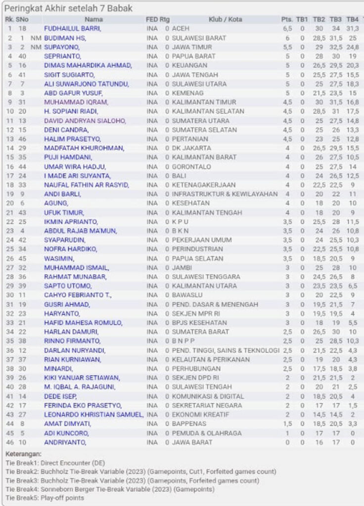Prestasi ini menjadi bukti nyata dari kerja keras dan dedikasi Budiman dalam mempersiapkan diri menghadapi Pornas tahun ini. Teknik bermainnya yang strategis dan penuh perhitungan membawanya ke posisi puncak klasemen kedua.