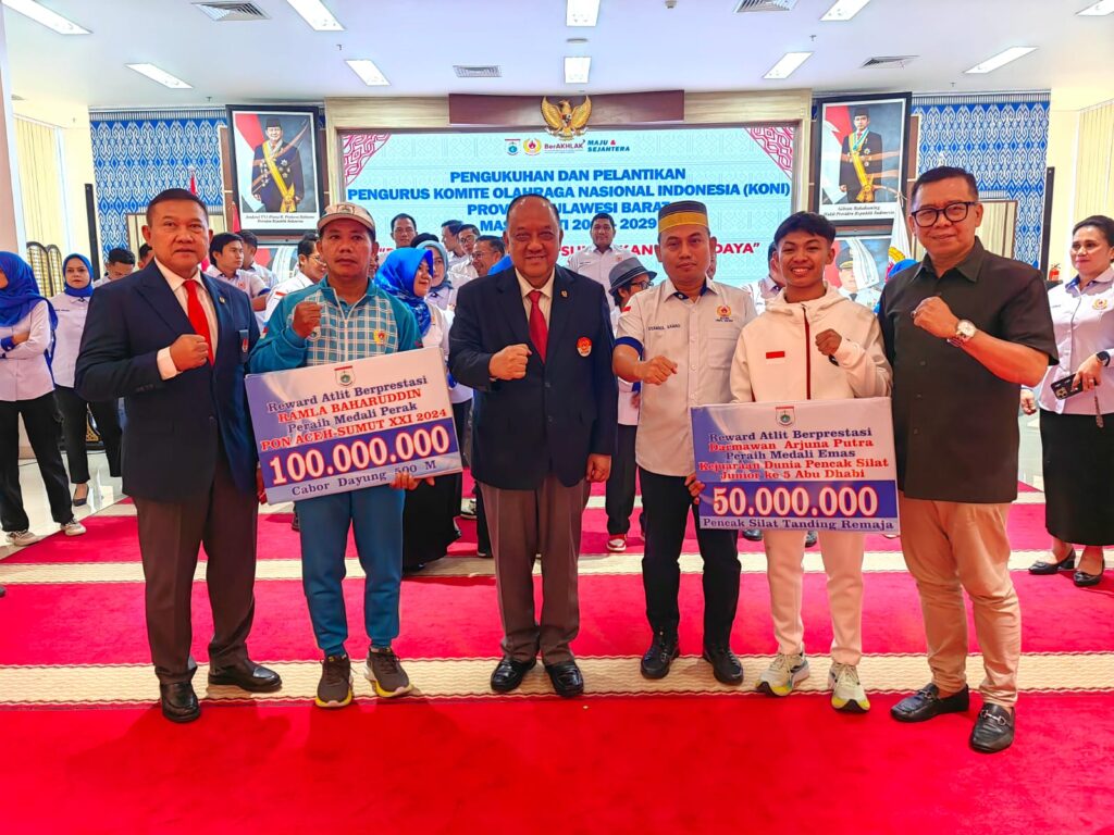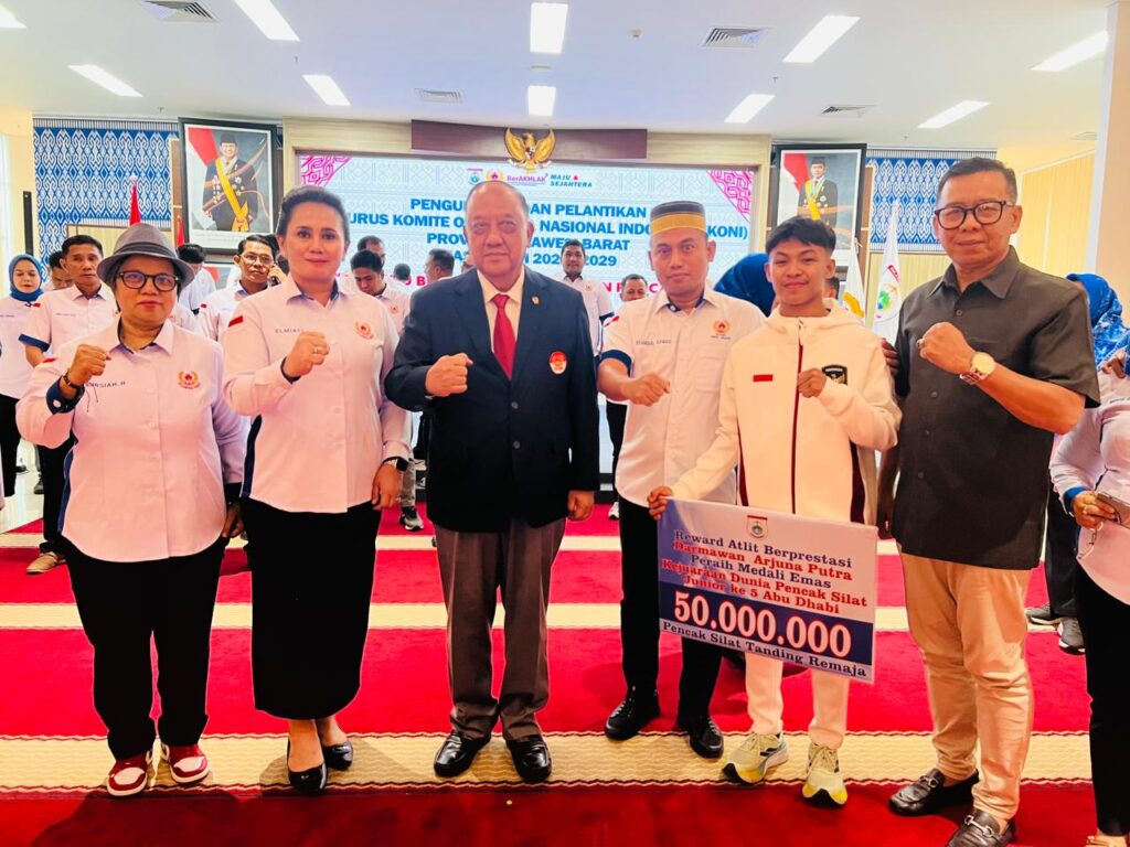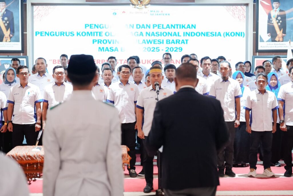 Seremoni pelantikan pengurus Komite Olahraga Nasional Indonesia (KONI) Sulawesi Barat periode 2025-2029 digelar di aula utama kantor Gubernur Sulawesi Barat, Jumat (12/12/2025). Prosesi pelantikan Syamsul Samad, ketua KONI Sulawesi Barat beserta sejumlah pengurus KONI Sulawesi Barat lainnya dipimpin langsung ketua umum KONI pusat, Letjen TNI Purn. Marciano Norman.