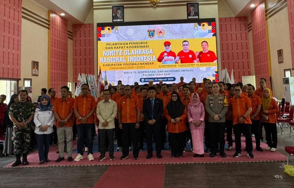 POLMAN, KONI SULBAR – Jajaran pengurus Komite Olahraga Nasional Indonesia (KONI) Kabupaten Polewali Mandar (Polman), Sulawesi Barat, periode 2025-2029 resmi dikukuhkan pada Minggu (15/2/2026).